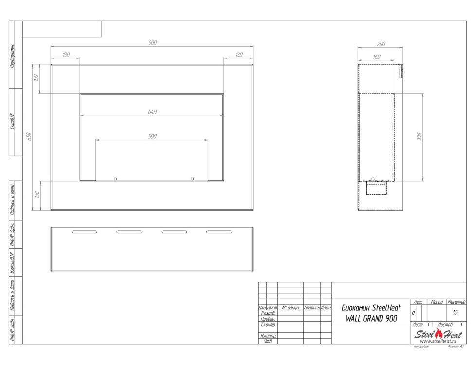 Биокамин SteelHeat WALL GRAND 900 черный, стекло