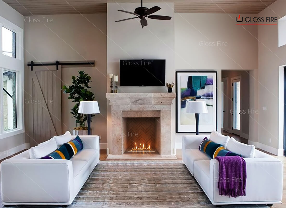 Очаг – это емкость куда заливается жидкое топливо. Емкость внутри заполняется керамическим материалом, который впитывает биотопливо, и в случае опрокидывания камина топливо не разливается. За счет этого конструкция стала полностью пожаробезопасной. Очаг встраивается в корпус из стали, который окрашивается специальной термостойкой краской, или же в заранее подготовленную нишу, изготовленную из негорючих материалов.