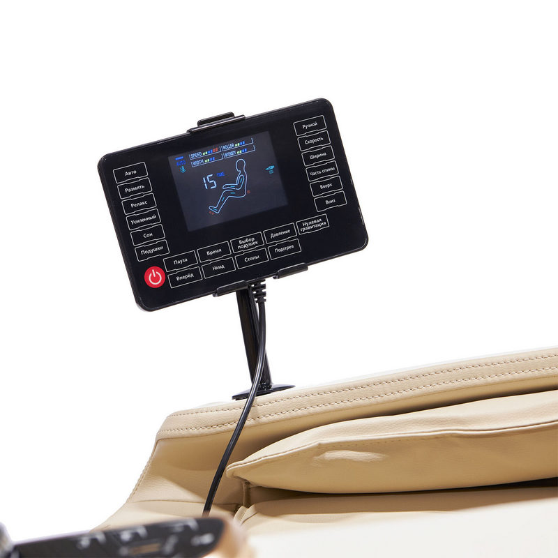 Регулировка под рост - с помощью этой функции кресло подойдёт людям с разным ростом., Невесомость (Zero-G) - кресло принимает положение, при котором ноги находятся выше уровня головы. При таком положении происходит максимальное расслабление и прорабатывание более глубоких тканей роликовым массажем., Раскачивание - во время массажа, кресло совершает плавные покачивающие движения., Слайдер - благодаря данной функции устройство можно ставить практически вплотную к стене и не беспокоиться, что при начале массажа, спинка кресла упрётся в стенку., Музыка - подключение к креслу по Bluetoth для прослушивания Вашей любой музыки во время массажа., Прогревание - с помощью инфракрасного прогрева происходит расслабление мышечных тканей, за счёт чего массаж становится ещё более эффективен. |